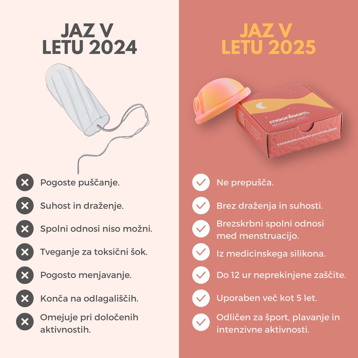 Si pripravljena na spremembo? Poslovi se od tamponov in vložkov ter sprejmi prihodnost menstrualne nege z Moonloom menstrualnim diskom. Tvoje udobje, tvoja izbira, tvoj planet.