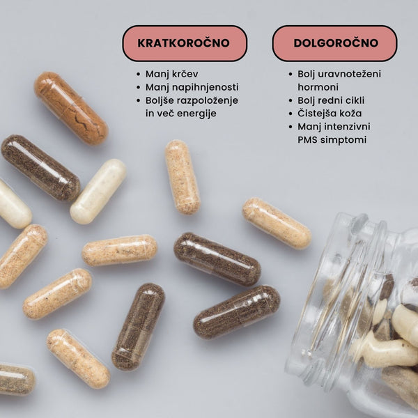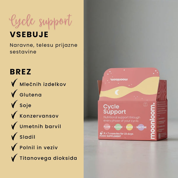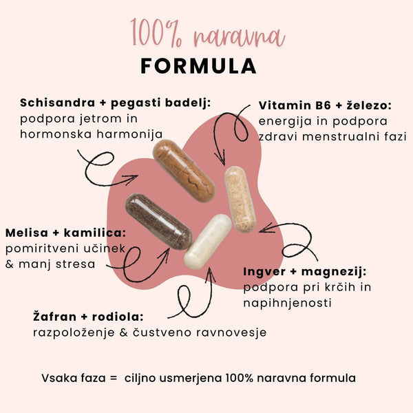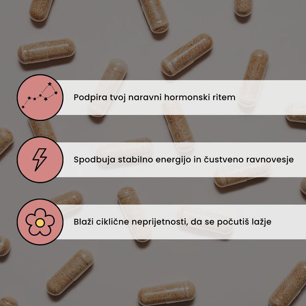 Brez umetnih polnil, sintetičnih dodatkov ali česarkoli, kar ne podpira tvojega dobrega počutja. Samo čista, premišljena podpora tvojim hormonom.