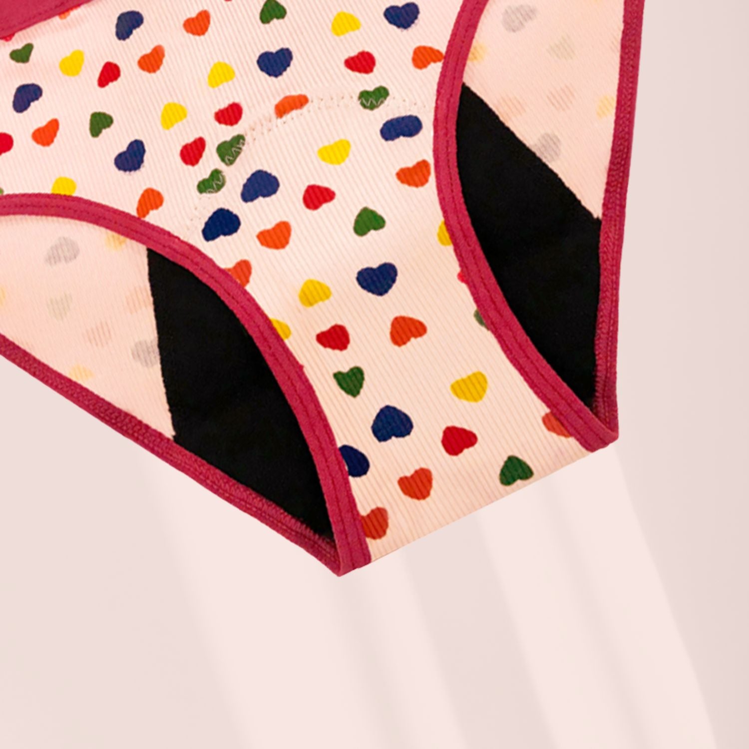Vesel potisk s srčki polepša dneve menstruacije, večslojno jedro pa poskrbi, da si varna pri športu, v šoli in med spanjem.