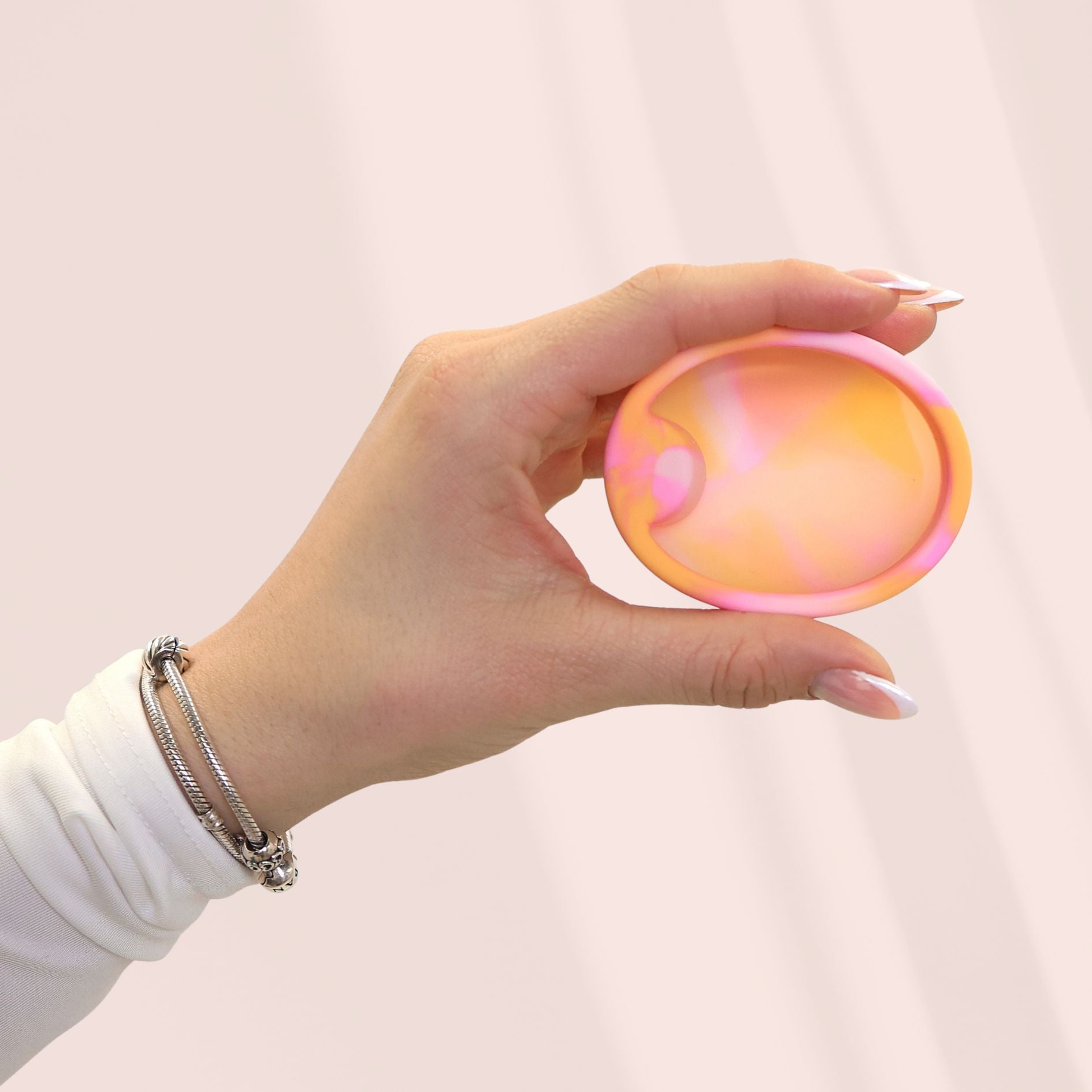 Moonloom disk je izdelan iz 100 % medicinskega silikona, brez vonja, biokompatibilen in popolnoma brez BPA, lateksa ter toksinov. Je v skladu z evropskimi standardi, veganski in cruelty-free – zasnovan tako za tvoje telo kot tudi za planet.